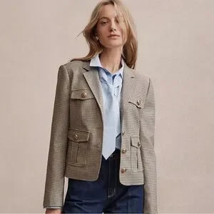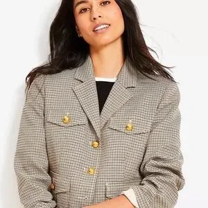 Loft Plaid Blazer with Gold Accents M