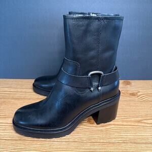 Dolce Vita Black Silver Lug Sole Horse Bit Leather Camros Harness Boot Women 7.5