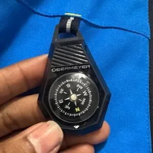 Compact compass accessory by Obermeyer. Features a sleek blue and black design.
