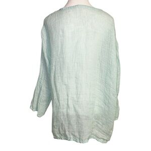 Eileen Fisher Green Long Sleeve Linen Gauze Pintuck Button Down Shirt