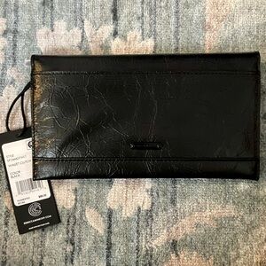 NWT Rebecca Minkoff black wallet clutch with a sleek design. Outside pocket, lots of inside pockets, one zippered. Credit card slots, etc. Includes dust bag.