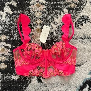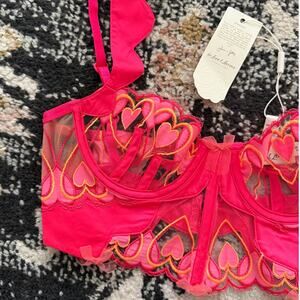 For Love & Lemons Graphic Hearts Bustier in Pink XS