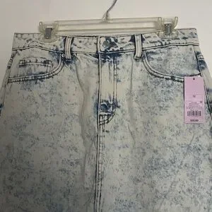Wild Fable Light Blue Acid Wash Midi Skirt