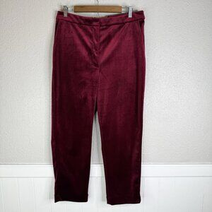 Express Editor High Rise Velvet Stretch Straight Ankle Pants Ruby Red SZ 14