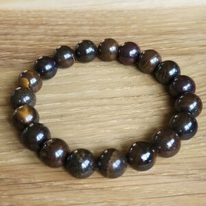 Brown Tiger Iron Beads Bracelet, Stretch, Hand Crafted