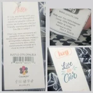 Lug Bustle Convertible Tote Crossbody Adjustable Strap Outline Floral Black NWT