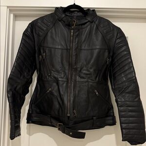 NWOT [Leather Skin] Black Brando Quilted Padded Genuine Leather Jacket Women’s L
