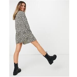 ASOS Leopard Long Sleeve Tiered Smock Mini Dress