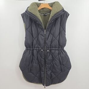 Free People Movement Venture On Vest Reversible Puffer Sherpa Green Black