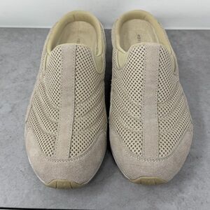 Casual and comfortable tan mules. Easy slip-on design. Ideal for daily wear.