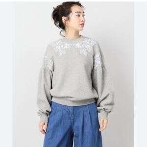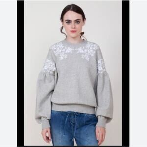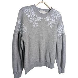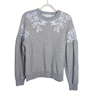 Ulla Johnson Judith Embroidered Floral Sweatshirt Small Gray Pullover Cotton