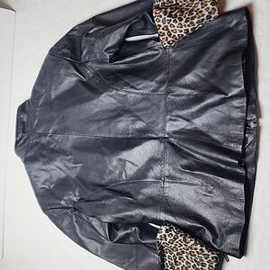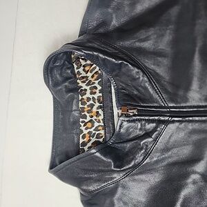 Pelle Studio Wilsons Leather Women's Black Leather Jacket Leopard Lining & Cuffs