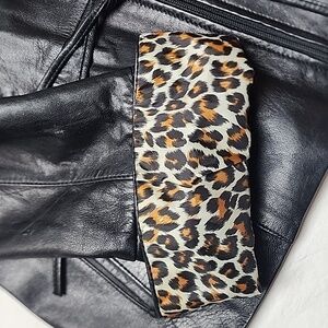 True women’s large with easy layering over tees or thin knits; the leopard lining adds peeks of statement when worn open or when cuffs roll. Works with jeans, skirts, or dresses.