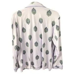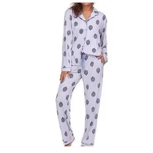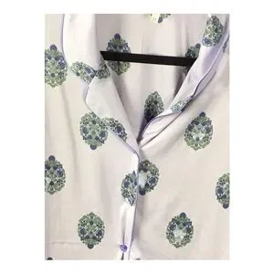 Experience ultimate comfort with the Flora Nikrooz pajama set, featuring a soothing white and green color palette. This classic set includes a long-sleeve top and matching pants, both adorned with elegant piping details. Perfect for a cozy night's sleep, the soft fabric ensures a relaxed fit.