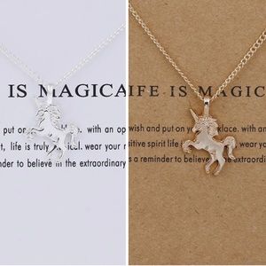 NWT Unicorn Necklace. Comes in silver tone or gold tone, zinc alloy, adjustable clasp, chain is approximately 8.5” - 9.5”, Charm is approximately 1” long.