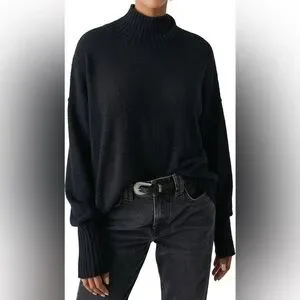 Fall for the slouchy fit of this mock-neck sweater knit with dropped shoulders and soft ribbing.