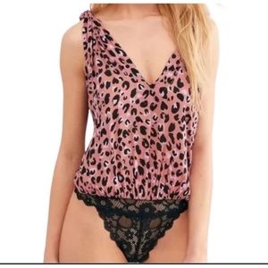 NWT Free People Intimately Bare It All Bodysuit Pink Leopard Print Size XS