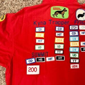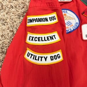 *Patches appear to reflect earned obedience and dog sport titles.