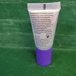 No7 Pure Retinol Eye Cream in purple and silver packaging. Fragrance-free formula. 0183 Bin 24