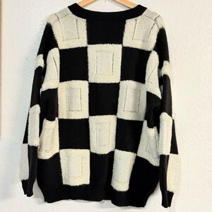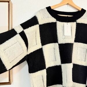 Revolve Line & Dot Black & White Checkered Sweater NWT Large