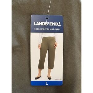 Lands' End - Olive Green Capri Pants Knit Pull On StretchCotton Spandex - Sz L