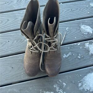 SOREL Women’s Brown Leather Lace-Up Wedge Ankle Boots – Size 8.5