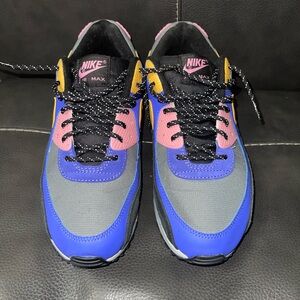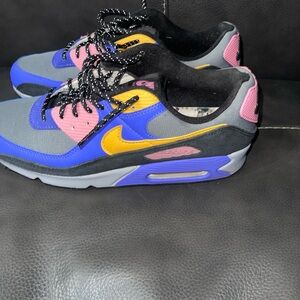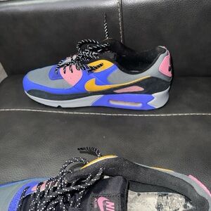 Stylish Nike men's shoes with a vibrant design. Features blue, yellow, pink, and black colors. Comfortable and trendy.
