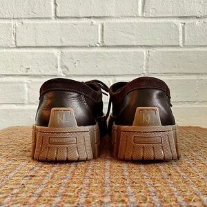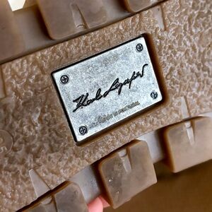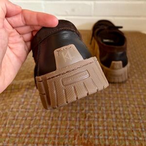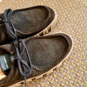 Men’s SZ 10.5, excellent preowned condition. Photos show all aspects of these Karl Lagerfeld Paris "Wallaby" chukka boots with suede upper, featuring a chunky toothed gum sole, flat heel, round moc toe lace-up ties, and a logo patch at tongue. Embossed logo motifs at heels counter the plaqué at outsole. Slip-on style. Made in Portugal 🇵🇹