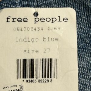 Free People denim skirt in indigo blue, size 27. Designed with a high-rise fit, 5-pocket styling, and a raw frayed hemline that gives a cut-off, lived-in look. Sturdy yet soft denim makes this skirt perfect for everyday wear. New with tags attached.