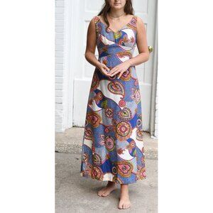 Vintage Sears Hawaiian Maxi Dress 60s 70s Paisley Retro Funky Hippie Cotton S