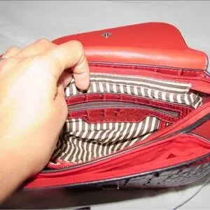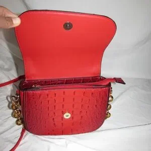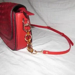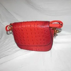 Elevate your style with this stunning red croc-embossed shoulder bag. Perfect for any occasion, it features a chic design and gold chain accents. A must-have accessory for fashion-forward individuals. ‼️purse strap is not original it was replaced‼️