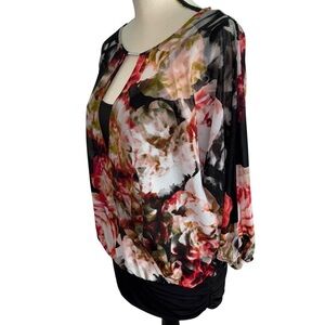 Jennifer Lopez Floral Keyhole Blouse - Black and Red size medium attached cami