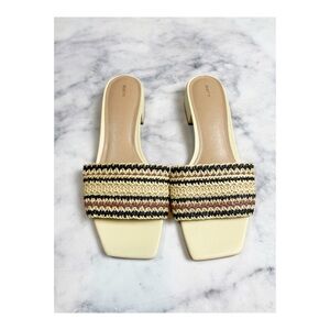 Anthropologie Maeve Coralie Raffia Striped Square Toe Slide Sandals Sz 41