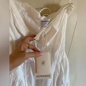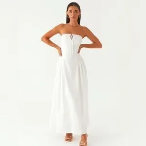 Peppermayo Elegant White Strapless Maxi Dress