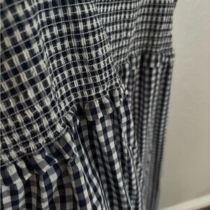 Chic gingham dress by J. Crew. Features a navy and white pattern. Ideal for versatile styling. Size small. Euc!! Adjustable straps