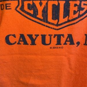 Harley-Davidson Motor Cycles Orange Mens Tee Shirt Finger Lakes Size Medium