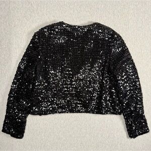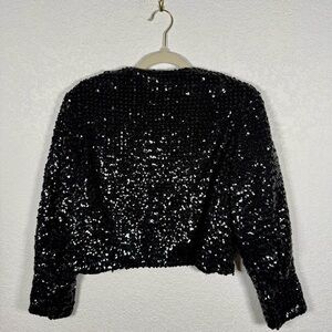Vintage Union Made ILGWU Black Sequin Cropped Bolero Jacket w/ Frog Closure