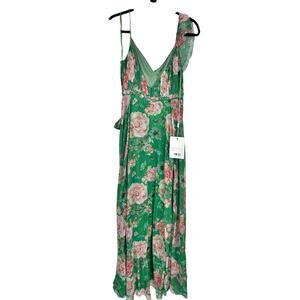 Mac Duggal Floral Print Ruffled Wrap Over a Line Gown Green Size 8 NWT