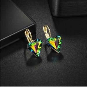 14K Yellow Gold with Vitrail Medium Austrian Crystal Heart Leverback Earrings