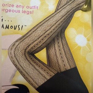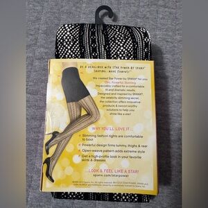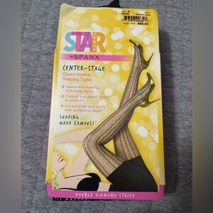 1 Black Star Power Spanx Center Stage Open Weave Shaping Tights Double Diamond Stripe Size C