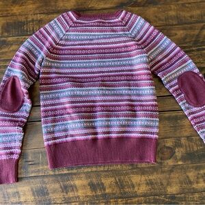 Bass Youth Sweater Size S Medium Cotton Blend Red Maroone Striped Preppy 90s, preowned see measurements and photos.
