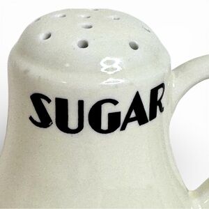 vintage ceramic sugar flour shakers handled floral kitchen decor cottage farmhouse country french shabby chic pastel storage tabletop dining baking accessories mid century retro home collectible kitchenware transferware motif cream ivory glazed pottery