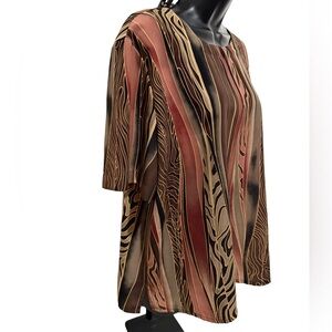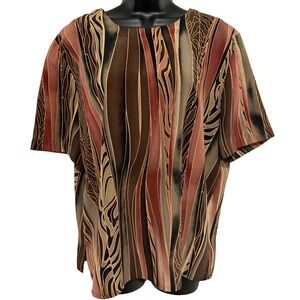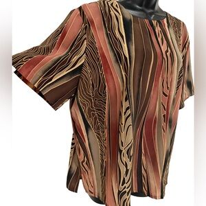 This elegant women's top features a striking multicolor design with shades of brown, black, and pink. Perfect for adding a touch of sophistication to any outfit.