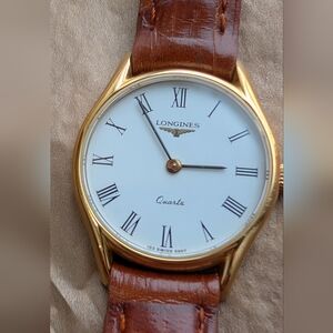Band / Buckle not original Leatherstrap with original tang buckle, signed LONGINES