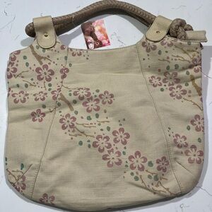 Floral Canvas Tote Bag - Cream and Pink