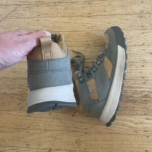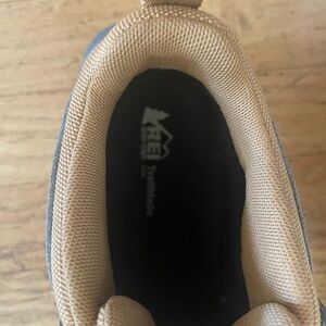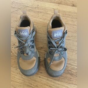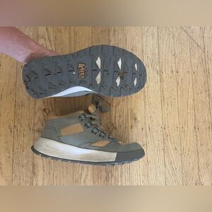 Sturdy REI Co-op hiking boots in brown and gray. Perfect for outdoor adventures.