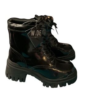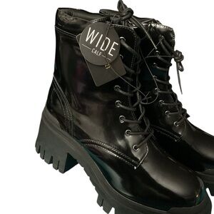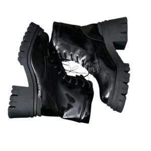🦄 Forever 21 Glossy Black Moto Boots RT $45