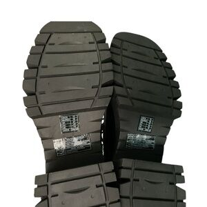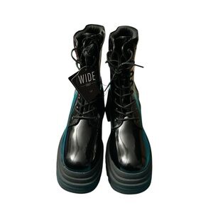 Sleek black boots with chunky soles. Lace-up front for a bold statement. Ideal for a modern edge.