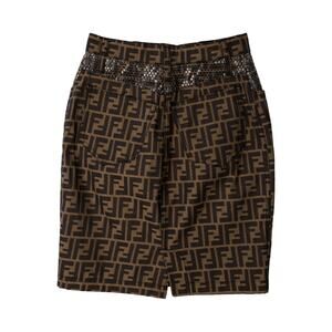 Fendi Brown FF Printed Mini Skirt S sz Retail $2,150
