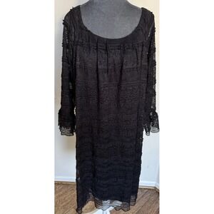 Vtg Y2K Dressbarn Midi Dress 20 Lace Sheet Fairy Grunge Whimsigoth Black Witchy